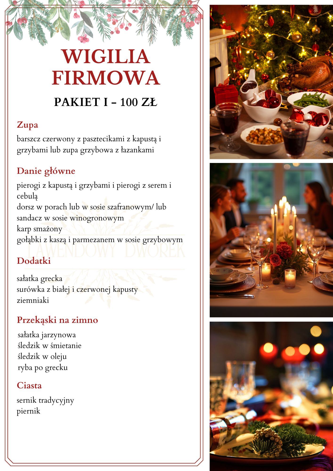 Przygotowaliśmy dwa bogate pakiety pełne tradycyjnych smaków i eleganckich propozycji, które idealnie sprawdzą się na firmowej Wigilii — niezależnie od wielkości zespołu.