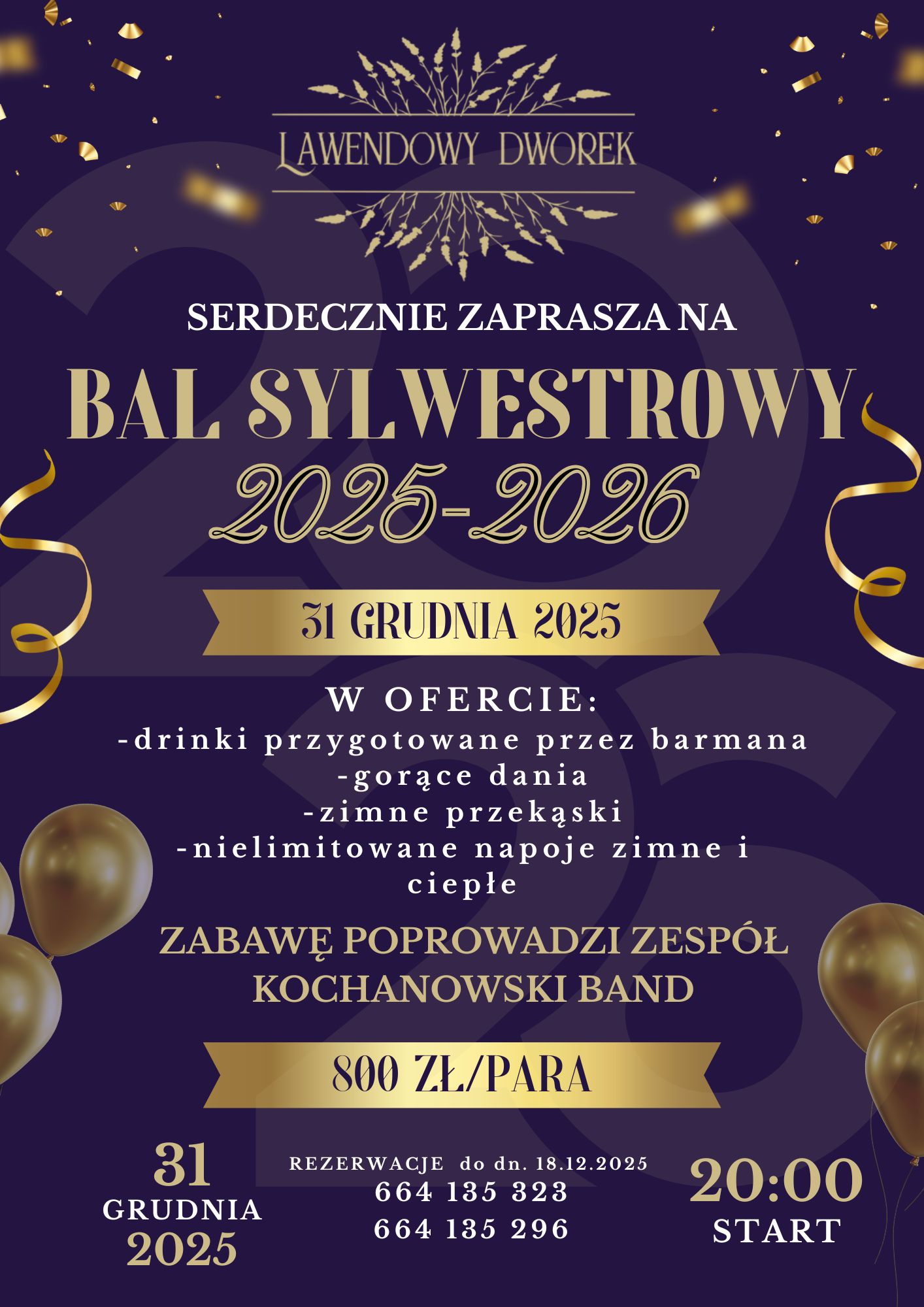 Zapraszamy Państwa na wyjątkowy Bal Sylwestrowy, który odbędzie się 31 grudnia 2025. Startujemy o 20:00, a dobrą zabawę do samego rana zapewni zespół Kochanowski Band!